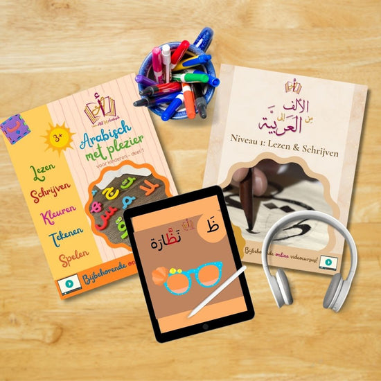 Onze aanpak is gericht op de ontwikkeling van de kinderen. Na het verhaal gaan we aan de slag met een speciaal ontworpen Arabisch werkboek, waarin de lessen op een speelse en interactieve manier worden verwerkt. Dit werkboek wordt ook thuis gebruikt, ondersteund door een cursus, wat zorgt voor een naadloze integratie van leren in de dagelijkse routine.